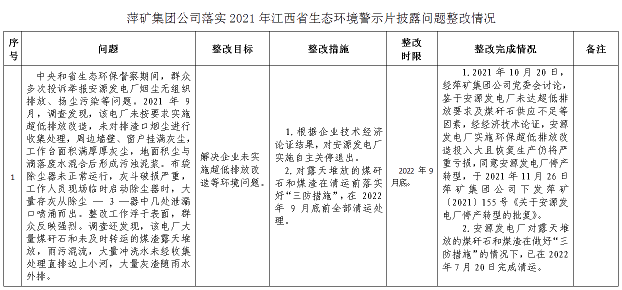 萍矿集团华亿首页(中国)网页版落实2021年江西省生态环境警示片披露问题完成情况公示