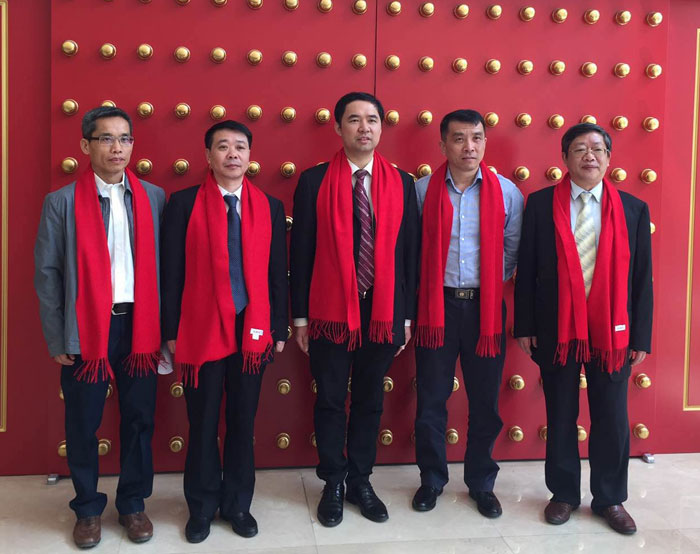 萍乡市委常委、副市长吴奕湖(中),江西省国资委出资监管企业监事会主席王成饶(右二),萍矿集团总经理刘伏生(左二),萍矿集团副总工程师兼同济建管华亿首页(中国)网页版董事长蔡毅(右一),同济建管华亿首页(中国)网页版总经理何祥国(左一)等出席挂牌仪式,共同见证这一神圣时刻。