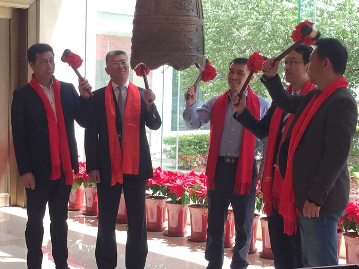 王成饶代表同济建管与其他几家单位代表一同敲响了开市宝钟。 此次同济建管能够成功登陆新三板,标志着萍矿集团再次成功搭建资本市场融资发展平台,推进国有资产证券化再次迈出坚实步伐,为企业发展提供了更为广阔的平台和契机。同济建管也将步入产业经营和资本运作双轮驱动的快车道,积极策应省能源集团转型发展战略规划,精心谋划蓝图远景,苦练内功、规范运行,借势广阔资本市场,继续乘风破浪、扬帆远航!(谢冬春 摄)
