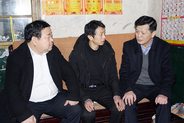 图为刘伏生(右二)在高坑煤矿困难职工李树强家走访慰问。吴艳辉 摄