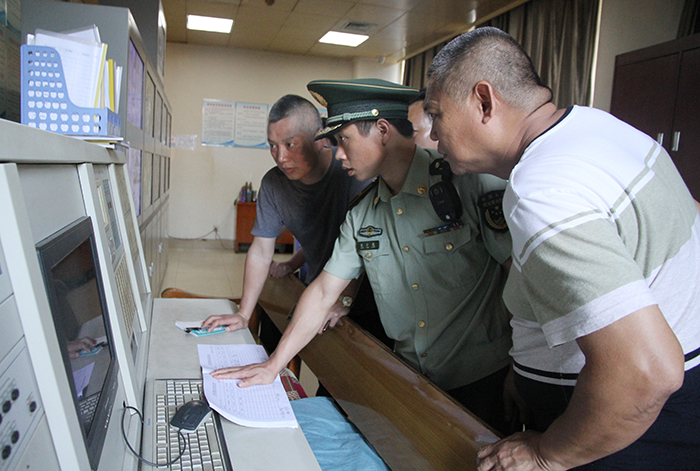 图为消防小组在检查消防控制室。