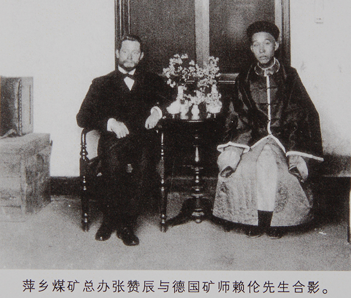 ▲张赞宸(1863-1907),字韶甄,江苏武进人,湖北候补知县。1896年4月调汉阳铁厂,担任铁厂提调兼稽核、总董。1897年委派萍乡查办煤务。1898年担任安源煤矿首届总办。1906年调任天津银行总办,1907年病逝。为纪念他的建矿功绩,1908年,报请清廷,在安源建筑张公祠。