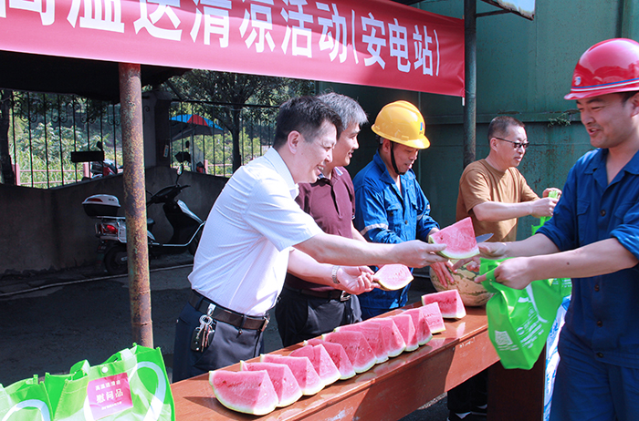 “辛苦了,现在天气炎热,大家要多注意安全和身体……”一句句朴实、暖心的话语,就像一阵阵凉爽的清风,沁入奋战在高温酷暑一线的萍矿干部职工心坎上。 连日高温,酷热难耐。8月6日—7日,萍矿集团领导吴培南、刘智明、徐建军、江苏波、徐松明分成两组,先后来到浮法玻璃厂、安源发电厂,安源管道华亿首页(中国)网页版和萍矿工程华亿首页(中国)网页版项目现场,深入生产车间、施工工地开展高温送“清凉”活动,让大家真切感受到了企业大家庭的温暖。 每到一处,萍矿集团领导都详细了解干部职工作业环境、劳动强度等情况,为他们送去防暑降温物品和西瓜,更送去了夏日的一片“清凉”。他们还特别叮嘱各单位负责人要多关心职工的工作和生活,尤其是现在正处于高温季节,要认真做好防暑降温工作,把防暑降温措施落实到位,确保职工安全度夏,真正做到有序生产、安全生产。 在浮法玻璃厂,萍矿集团党委书记、董事长、总经理吴培南亲切地握着当班职工的手,语重心长地提醒他们注意安全、注意防暑。在窑头投料口,吴培南详细了解了当天的安全、生产情况,并不顾窑头100多度高温,拿着观察镜片仔细、认真地观察了窑内火焰燃烧情况。 “现在你们厂因洗渣原因,影响发电,大家要在确保安全的前提下,齐心协力攻坚克难,全力保生产保发电。”在安源发电厂,吴培南有说有笑地与当班职工亲切交谈。“我是运行车间的,他是维修车间的。目前我们虽然有一些困难,但我们将一如既往地坚守岗位、履职尽责,只求企业能尽早脱困。谢谢领导对我们一线员工的关心。” 职工们一边吃着西瓜,一边表着决心。 据悉,此次岗位送“清凉”活动共发放了522份防暑降温物品至上述单位以及武功山休闲旅游华亿首页(中国)网页版的高温岗位人员。