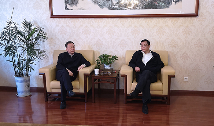 图为曾昭和(右)与李江河(左)在深入交流。 谢冬春 摄