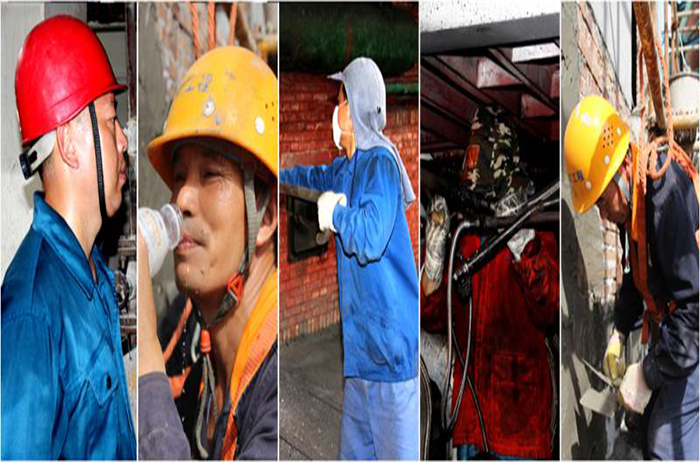 持续的高温,让初夏也显得异常炎热。动辄36℃、37℃的气温,直逼得人想时时刻刻坐在空调下。但在萍矿集团各单位,却有不少职工,坚守在烈日下、窑炉前,经受高温“烤验”,体现担当作为。 今天,让我们用镜头追随他们,记录他们的付出,感受他们的敬业,并将大写的“赞”送给他们! 原定11月31日前完成的萍安钢环保项目土建安装工程,因甲方需要,需提前至8月31日完成,任务紧,工期重!为如期完工,从进场施工至今,萍矿工程华亿首页(中国)网页版30名施工人员日日“钉”在工地,加班加点加油干。持续高温,让工地地表温度高达50℃!但烈日炎炎挡不住他们施工的热情,尽管衣服一次次被汗水湿透,5L装的水一天喝两瓶都不够,他们没有退缩,每天争分夺秒,战高温、斗酷暑,比质量、比速度,因为他们深知:重任在肩,唯有担当! 炉内温度高达1600℃,炉外温度也高达80℃,从炉前路过,脸上的灼热感就象太阳挂在头顶与你同行。十几米的行程,汗水会让你全身湿透。在浮法玻璃厂,熔化工经常要在这样的环境中检查燃烧器和投料情况,以保证良好的燃烧工况,满足生产工艺要求。检查燃烧器时,他们必须穿上厚厚的防护服,戴上防护帽和手套。为确保安全,他们每次必须行动迅速、判断精准,在10分钟内完成操作,否则,长时间的高温会对身体造成伤害。而这样的高温“烤验”,对他们来说已是家常便饭。他们被炉火映红的眼睛,透着钢铁般的坚毅! 当锅炉门一打开,扑面而来的热浪让人喘不过气来,虽只有一瞬间,但温度却高达80℃。在安源发电厂,这种情况不是偶尔才有,而是经常要经历。锅炉的正常运行,对正常发电至关重要。因为工作流程的需要,该厂锅炉运行车间的员工每天就是在这四季如夏的环境中,穿着厚厚的工作服,忍着灼人的热浪,定时定点对锅炉、煤斗、皮带进行维护,保生产,保安全,衣服是湿了又干、干了又湿。但他们任劳任怨,一心只为确保锅炉的正常运行。