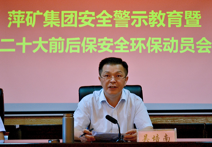 为进一步贯彻落实安全生产十五条措施,认真汲取事故教训,强化安全生产意识,有力落实各层各级岗位人员安全生产责任,9月19日上午,萍矿集团召开安全警示教育暨二十大前后保安全环保动员会。集团党委书记、董事长吴培南出席会议并讲话。集团在家高管,各部门正、副职,各单位党政领导、分管安全生产环保领导、安全生产环保部门负责人,集团安环部全体人员参会。