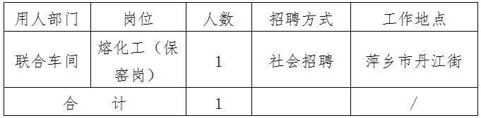 三、岗位职责及任职要求 (一)岗位职责 负责本班熔化情况,观察窑内情况,合理控制料山、泡界线位置,检查火焰燃烧情况并更换燃烧器,负责对小炉闸板、助燃内阀的调整,换火系统的操作,倒换各类风机,对窑炉进行一般的热修,并对窑炉及其附属设备进行巡查。 (二)岗位要求 1.年龄:36岁以下(含36岁); 2.学历:高中及以上; 3.身体健康、对高温具有较强的耐受性。服从分配管理。党员优先。 四、薪酬待遇 对入职人员实行3个月试用期考核机制,试用期间工资为萍乡浮玻厂同岗位工资的80%,不低于萍乡市最低工资标准。试用期结束合格后享受同工种薪酬待遇,缴纳五险一金,享受双休、法定节假日、带薪年假,提供健康体检。