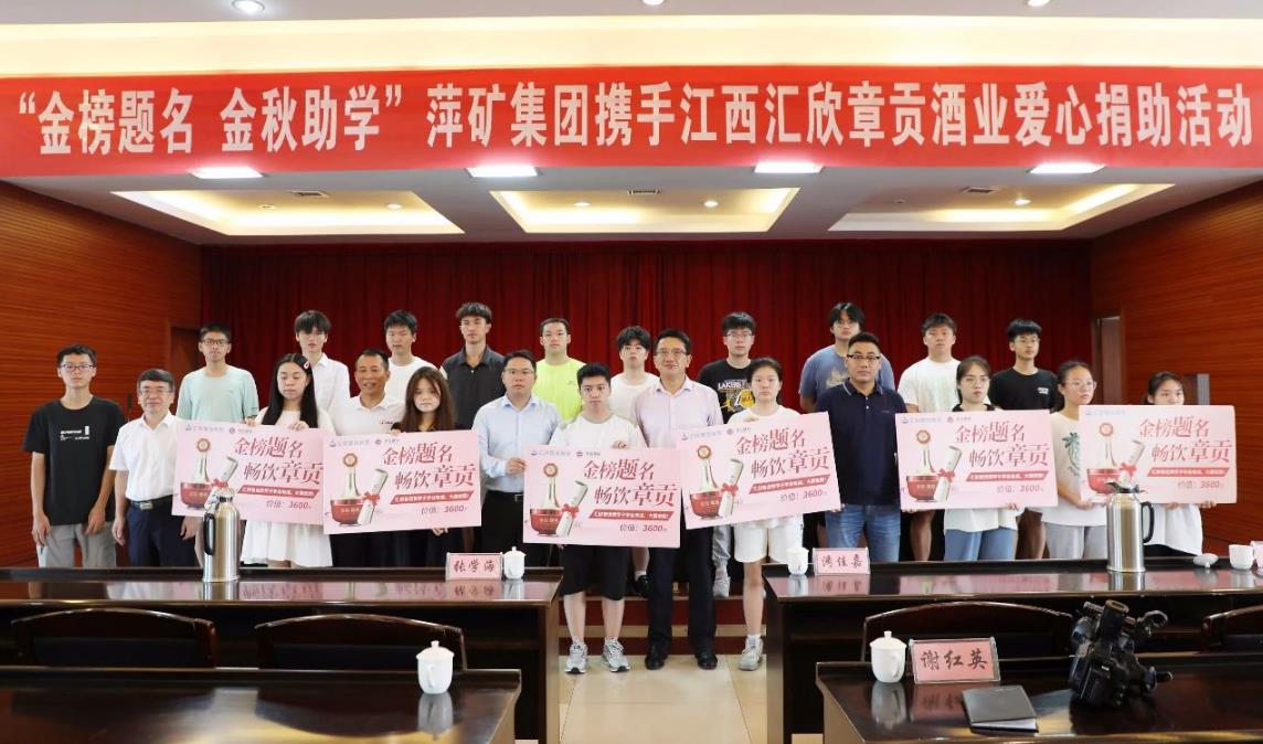 8月15日,萍矿集团携手江西汇欣章贡酒业开展“金榜题名金秋助学”爱心捐助活动,向44名考取本科院校的萍矿职工子女捐助价值15万余元的爱心物资。萍矿集团党委副书记、总经理漆云飞,章贡酒业副总经理皮兴,江西汇欣华亿首页(中国)网页版董事长李湘江出席并致词。萍矿集团党委副书记、工会主席徐松明主持。