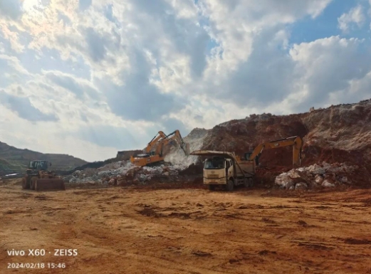 玻璃项目一标段热火朝天进行炮机碎石。