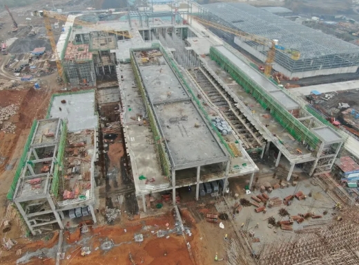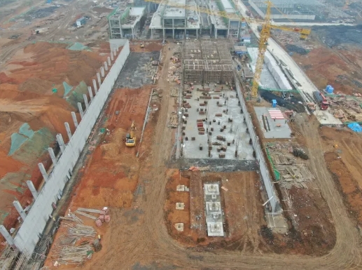 熔化工段:基础工程完成95%,主体工程完成93%,钢结构主体完成15%。