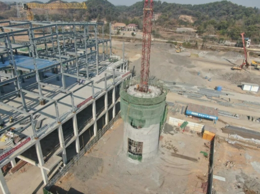 熔化工段:基础工程完成100%,主体工程完成100%,钢结构主体完成70%。