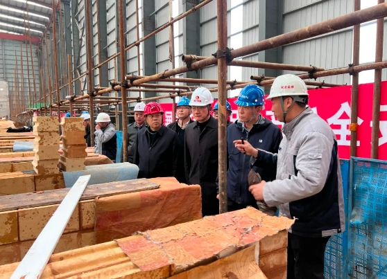 在玻璃项目窑炉建设现场,叶荣详细了解窑炉砌筑施工方案,询问烟囱施工进度过程中遇到的困难和亟待解决的问题。他指出,防护栏是高空作业人员的“生命线”,窑炉砌筑现场防护栏设计应执行“双重保险”原则,决不能有丝毫侥幸心理。