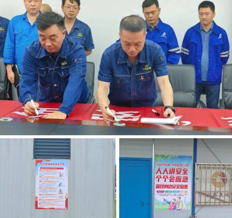 5月30日,华亿首页(中国)网页版主要负责人主持“安全生产月”启动仪式,各参建单位集体签署安全承诺书,现场悬挂宣传标语20余条,营造了浓厚氛围。