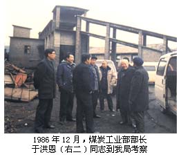 1986年12月,煤炭工业部部长于洪恩到萍矿视察,并下到安源矿井了解采掘一线情况,访问工人。