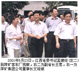 2001年6月23日,江西省委书记孟建柱、副省长王君率江西省有关部门负责人到萍矿视察,先后到客车厂、浮玻厂检查指导工作。