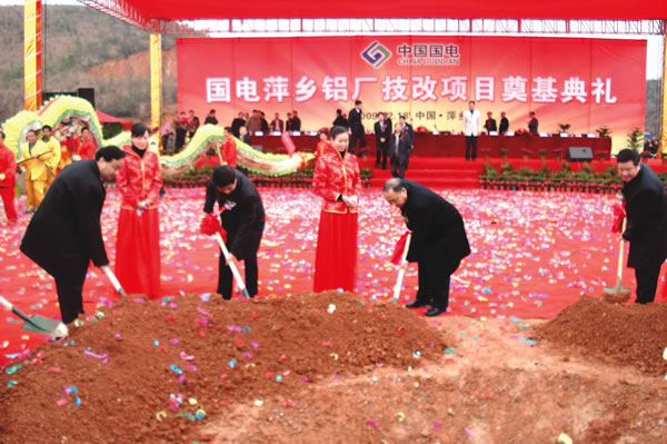 10点50分,在一片鼓乐声和礼炮声中,张玉新宣布中国国电萍乡铝厂技改项目奠基典礼开始。