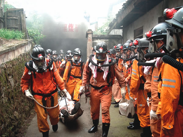9点整,魏建明宣布:萍矿集团华亿首页(中国)网页版2009年煤矿应急救缓演练正式开始!顿时,只见“伞铺里煤矿”浓烟滚滚,调度室接警后迅速调度,救护大队奉命赶到事故现场组织两个小队进行紧急抢险救援,两个小队分别救出两名遇险矿工,进行苏生。湘雅萍矿合作医院医疗组及时对伤者进行包扎、止血、固定后,救护队员将伤员抬运上医疗救护车。整个应急救援演练有条不紊地进行。