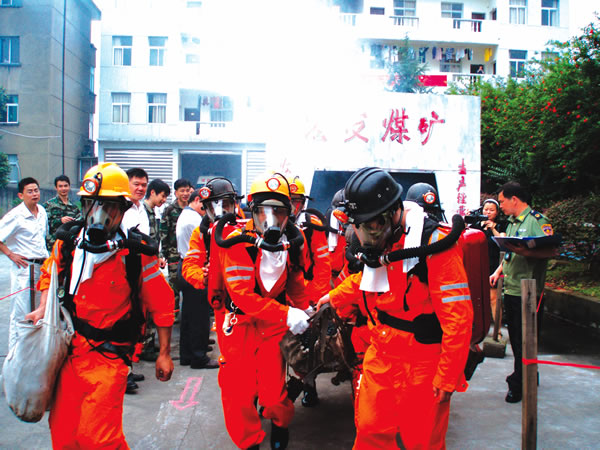 “宏发煤矿二区3012工作面发生火灾,内有人员,命令你们火速赶赴支援。”在接到调度室的命令后,萍矿救护队员向总指挥报告,领命进入矿井内部,将明火扑灭,并及时将受伤人员抬运出井急救……看到这个场面,您可千万别太紧张,因为这不是真的火灾,而是萍矿集团华亿首页(中国)网页版2010年应急演练中的一个模拟救援项目。