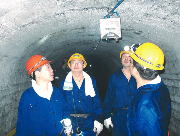 参观人员在参观青山矿井下质量标准化建设成果。(袁鹏 摄)