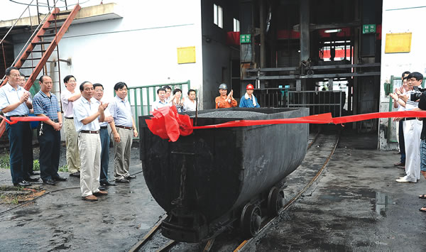 上午11时16分,宜萍煤业试运转后的第一桶煤从井口罐笼缓缓而出,平稳地向前驶去,在通过轨道上方系着的红绸带时,工业广场内响起了热烈的掌声和喜庆的鞭炮声,这标志着宜萍煤业矿井联合试运转和首采区启动的成功。仪式后,彭志祥等领导还察看了原煤提升运输的全过程,提出了意见和建议,要求宜萍煤业抓住煤质好的优势,搞好安全生产,加强瓦斯治理,做好科学管理,在试产、投产、发展的起步关键之年做出实实在在的成绩。