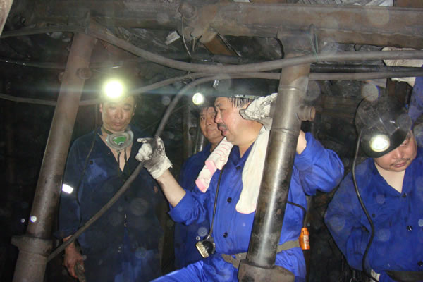 在井下,魏建明一路查看安全设施和巷道布置,一路询问生产组织情况,听取白源矿党政领导的汇报。进入今年以来,白源矿井下地质条件发生根本性变化,大部分采区都只能对煤质差的老墟进行复采,因而煤炭回收率低,由于在岗人员老化、离退休和出国务工等因素影响,造成井下一线生产劳动力不足。加上比去年多出一倍的开拓进尺工程和巷道修理工程量等因素的影响,严重制约经济效益的发挥,生产效益面临巨大压力。魏建明对白源矿不畏困难,夹缝找煤求生存的精神和向质量标准化要安全的责任感给予了充分肯定。