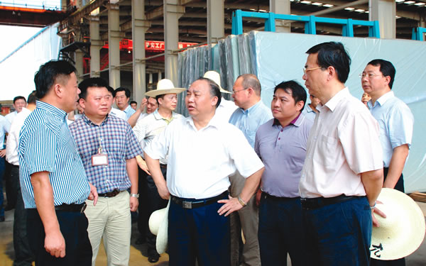 走出车间,凌成兴一行在烈日下步行来到250吨/天光伏玻璃生产线建设工地。当得知项目建设已完成75%以上的工程量,有望9月底顺利实现点火投产时,凌成兴非常高兴。刘建高汇报说,安源股份华亿首页(中国)网页版在省委省政府和萍乡市委市政府的关怀和支持下,紧紧抓住省煤炭集团华亿首页(中国)网页版重大战略重组机遇,全力推进玻璃产业的发展,争取完成“三年建四线六窑”的任务,努力打造一条完整的玻璃产业链,使安源玻璃工业园成为年产值30亿元、年利税5亿元的玻璃生产和深加工基地,积极推动企业转型发展和地方经济建设。凌成兴指出,安源玻璃工业园在改造转型中壮大了规模,希望继续加快建设,变工程项目为现实生产力,为萍乡乃至江西社会经济发展作出应有贡献。