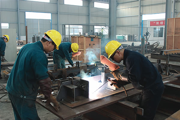 图为职工在为支架主梁组焊。(黄优中 摄)