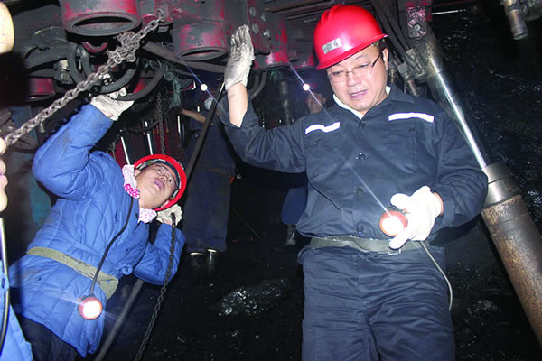 “整洁的巷道,整齐的料场,比国企煤矿一点也不差。”11月16日上午,萍乡市地方国有煤矿五陂煤矿井下来了一群客人,他们身穿工作服,兴致勃勃,且带着新奇的眼光观看着井下的设施。这群客人是来自集团华亿首页(中国)网页版安全生产部门及各矿的有关负责人,他们到五陂煤矿是为参观井下悬移支架支护工艺的应用、交流安全生产管理方面的经验。 在42工作面尾上,一盏明亮的灯,照亮了大半个工作面,地面监控系统正对井下安全生产情况进行监控,两名工人正在采煤。灯光下,使用悬移支架的工作面整齐结实,但工作面坡度大,走在工作面上还要扶着支架上的铁链。据该矿技术人员介绍,工作面的坡度为37.5度,最大坡度达40度,人有时都站不住脚。工作面上每隔一定距离,就有木板挡在支架间,起到缓冲坡度作用。 五陂煤矿是在安源煤矿帮助下推广使用的悬移支架,采用的是萍矿机械厂生产的悬移支架,共使用了42架,其43准备工作面也将继续使用悬移支架。安源煤矿4月份开始使用悬移支架,五陂煤矿7月份就去学习取经;8月15日,该矿矿长梁金清带领管理人员下井安装,8月20日就用上了悬移支架。42工作面长50米,使用悬移支架42架。梁金清说,五陂煤矿工作面坡度大,顶底板起伏不平,单体液压支柱支撑不住。当得知安源煤矿使用了悬移支架,他们就迫不及待也要推广使用。该工作面以前有15名采煤人员,现在只有一名副班长带一名大工,支护材料成本由以前的每吨5元多,降至现在1元钱左右,安全系数也大大提高。