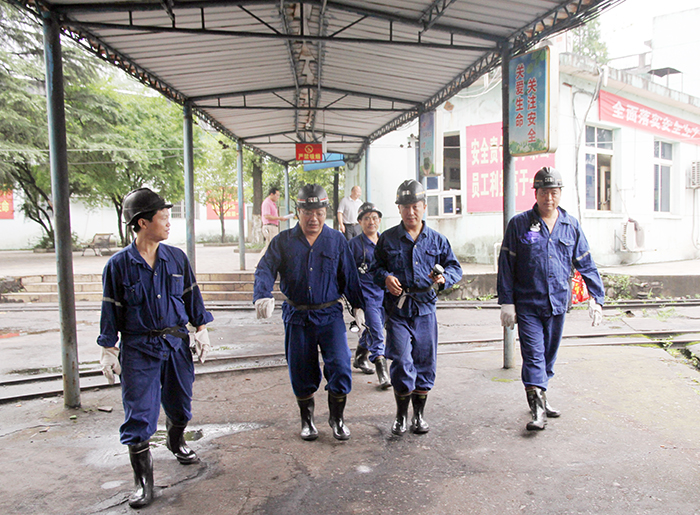 图为彭群伦(左二)率队深入白源煤矿井下进行现场检查 6月20日起,萍…